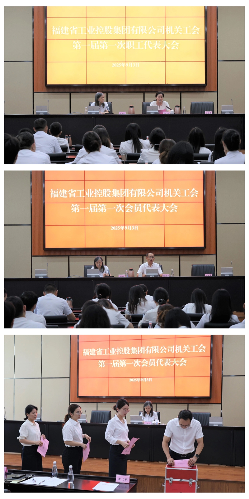 會議選舉產生第一屆工會委員會、工會經費審查委員會和工會女職工委員會委員,表決通過《本部員工薪酬管理辦法》《本部員工考勤管理辦法》等2項制度。